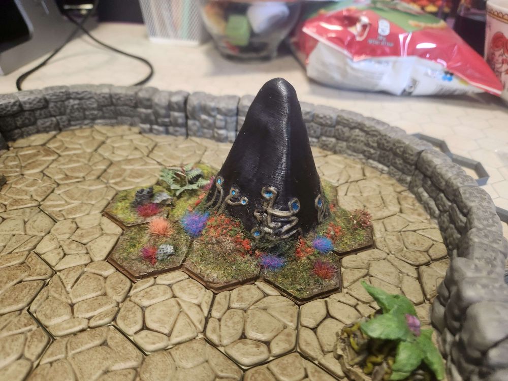 Er zitten geen paddenstoeldraadjes rondom het steen van het construct. De paddenstoelen vinden het construct echt heel naar. Zelfs als het alleen maar aangewezen/getekend wordt.
