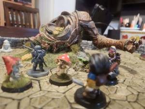 Mumuh graaft de tunnel. Dadmic schraapt in het dwergs “Dadmic was hier”